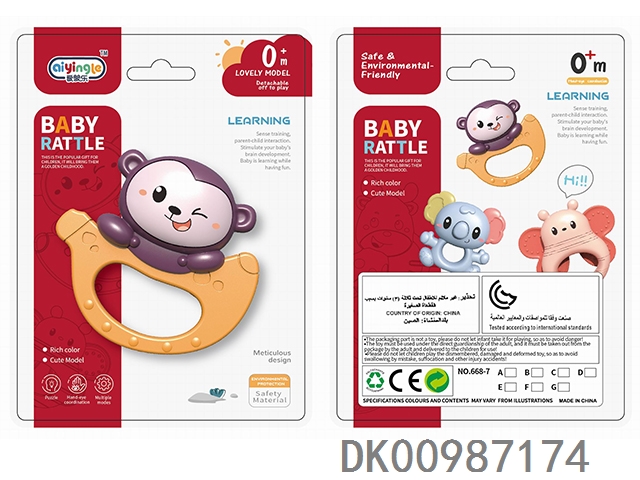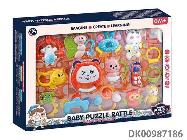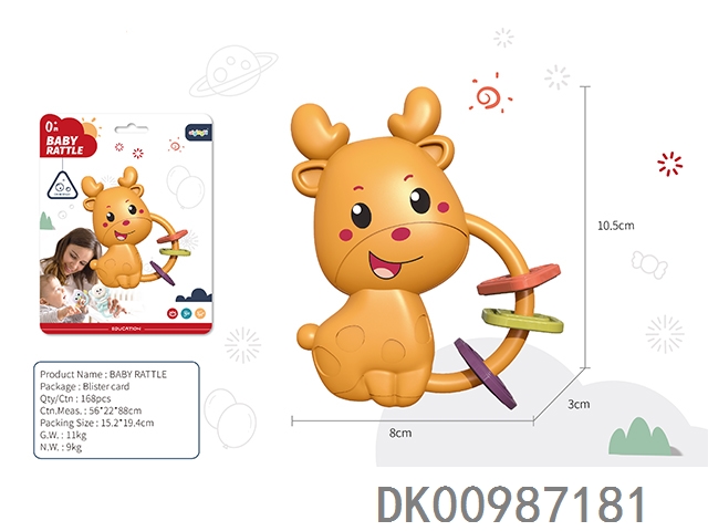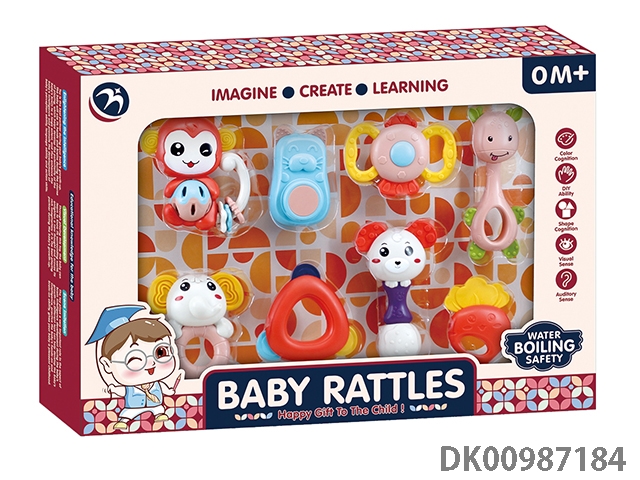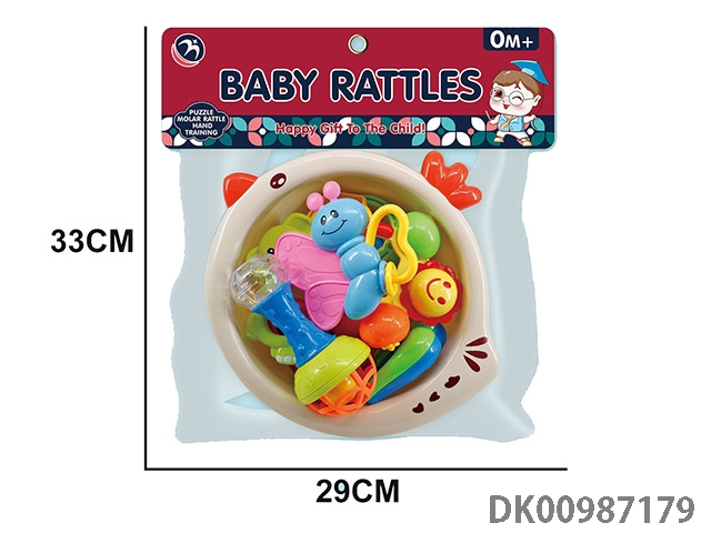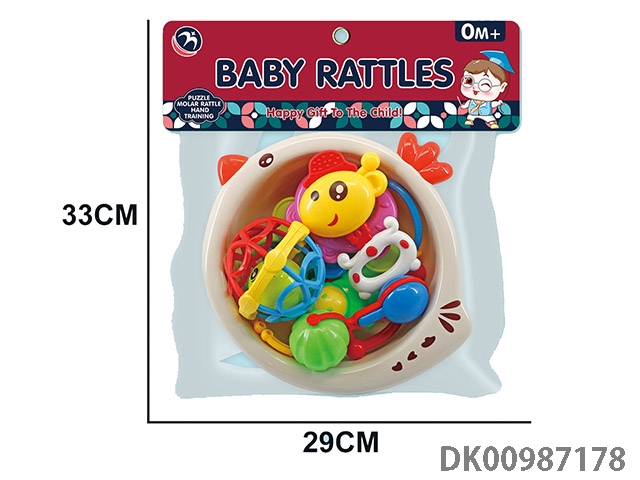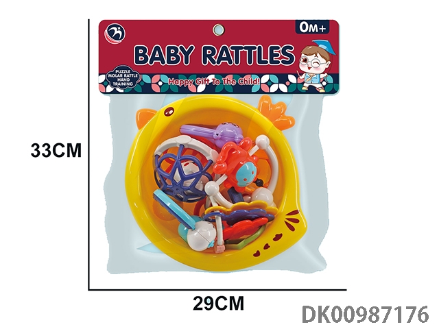 Baby soothing rattle (gum deer, snail, monkey, small fitness ball, flower basket, garland, 4 rings)