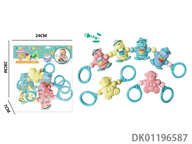 Baby’s hand held rocking bell, soft rubber hammer, dumbbell