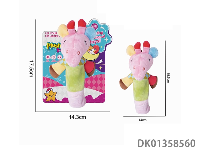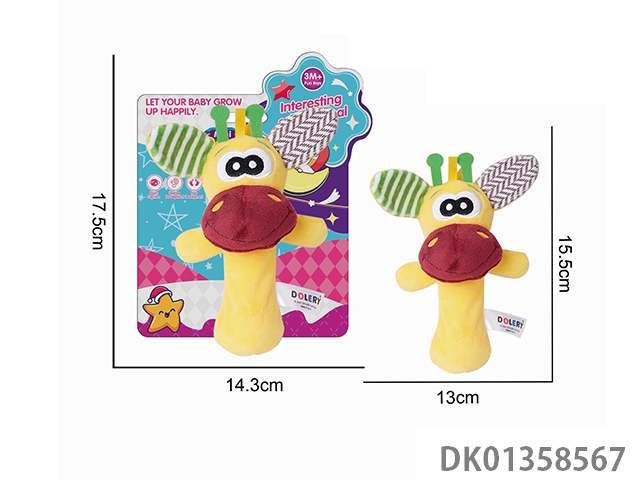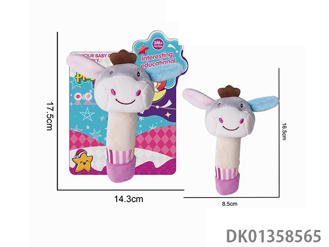 Plush little yellow donkey holding ring bb stick baby soothing toy
