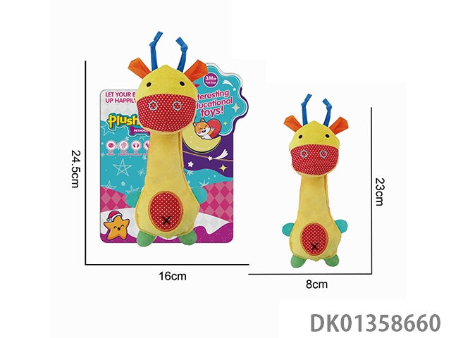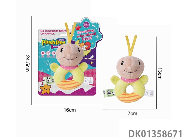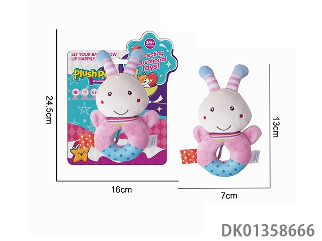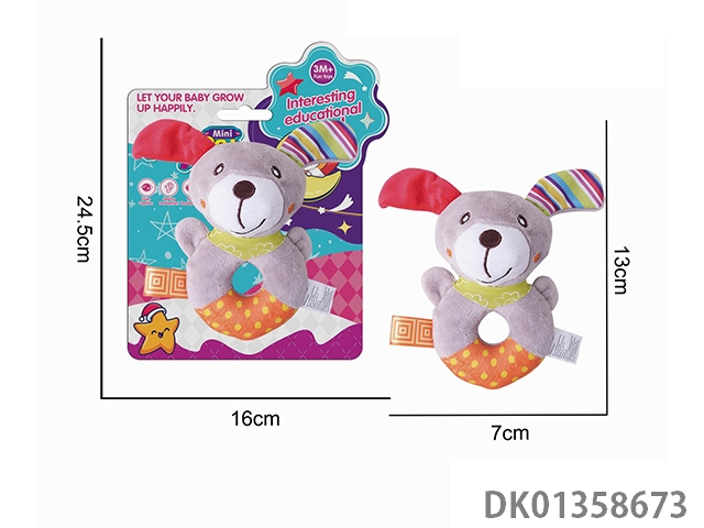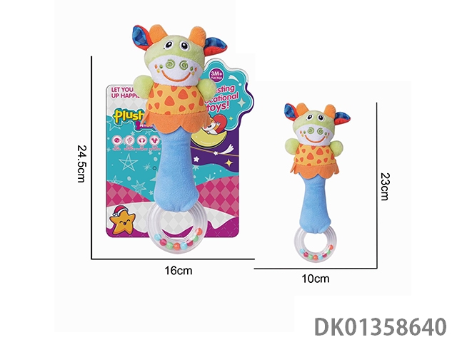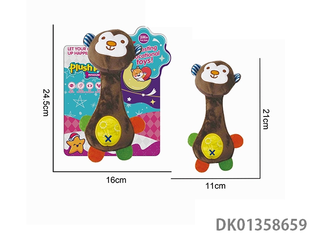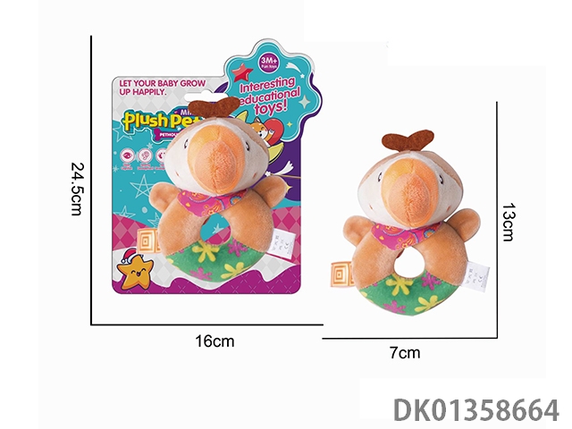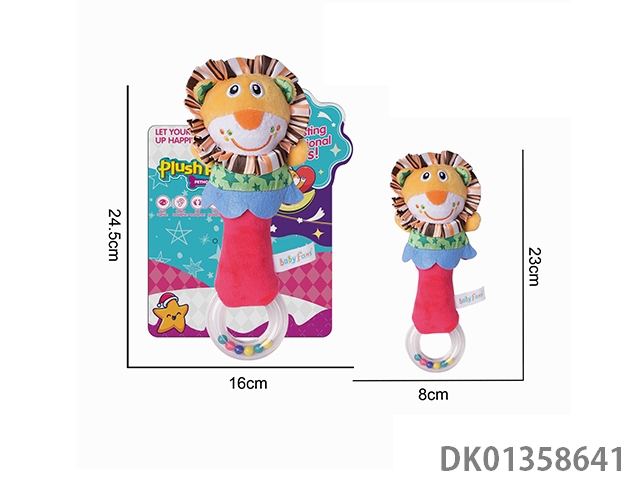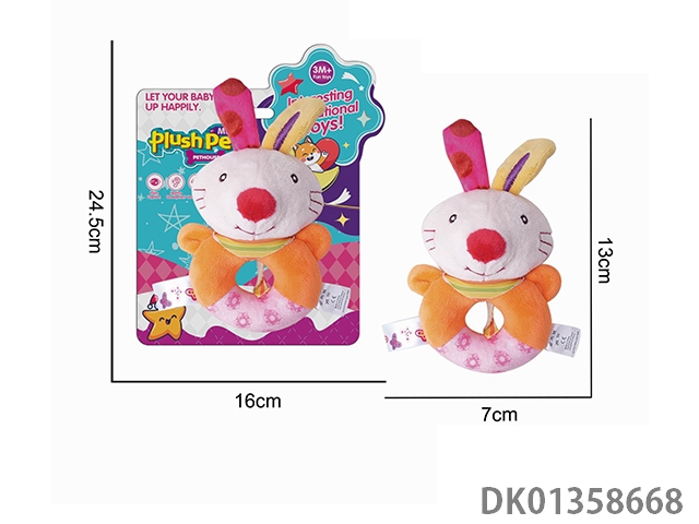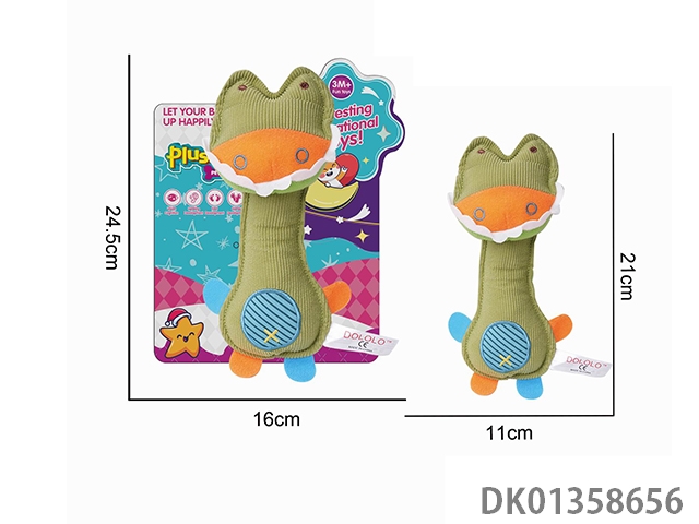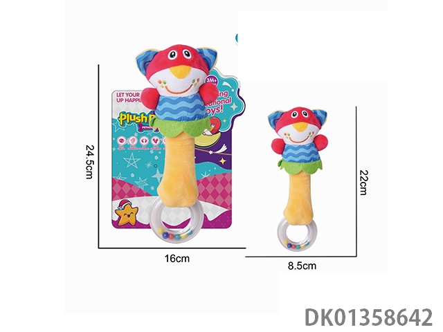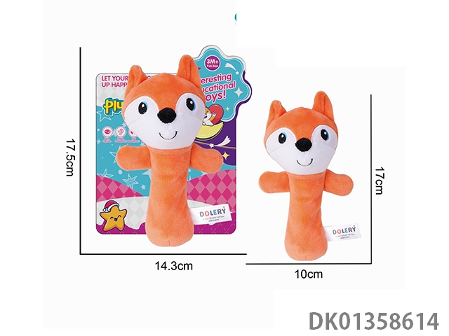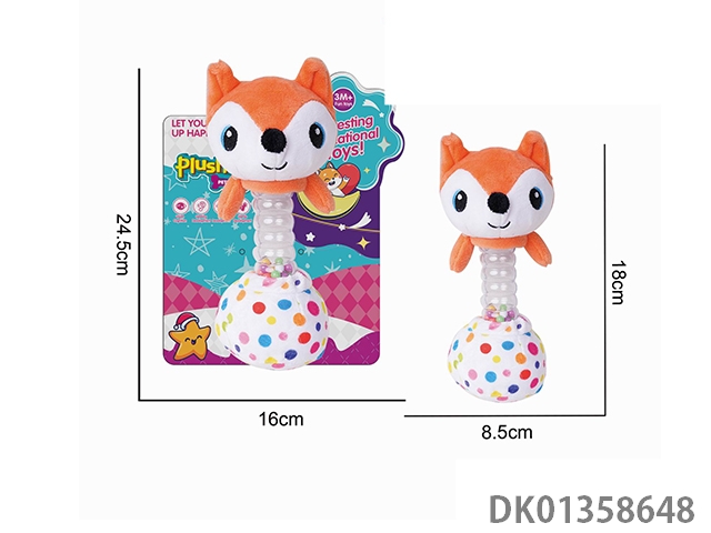 Plush orange fox holding a baby pacifier toy with a ringling bb stick