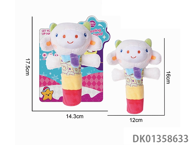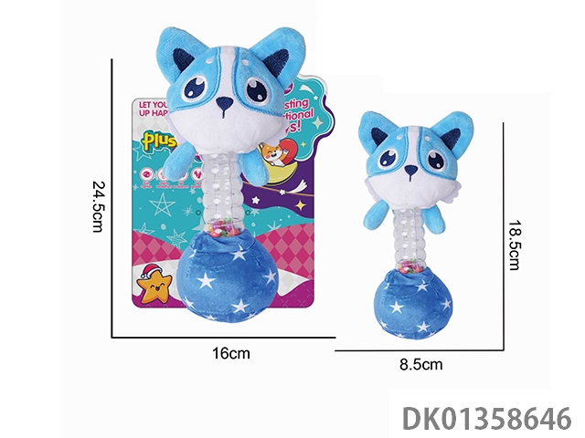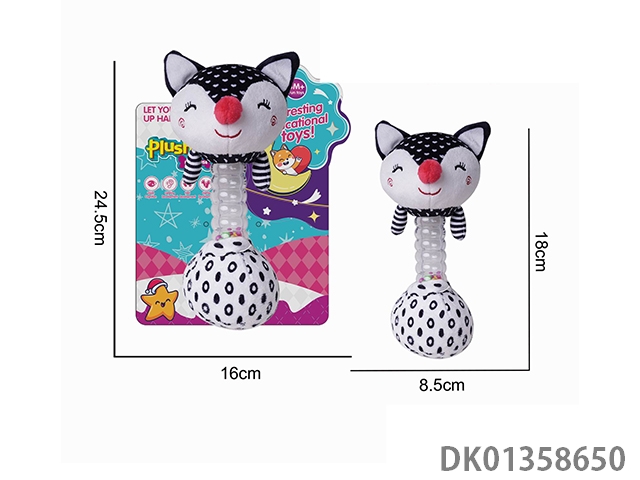 Plush black and white fox holding a rocking bell bb stick baby comfort toy