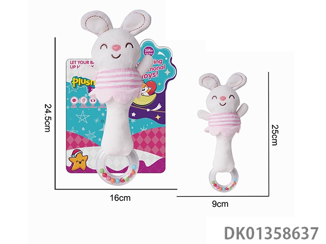 Plush kitten holding a baby pacifier toy with a ringling bb stick