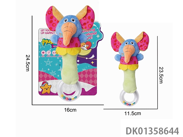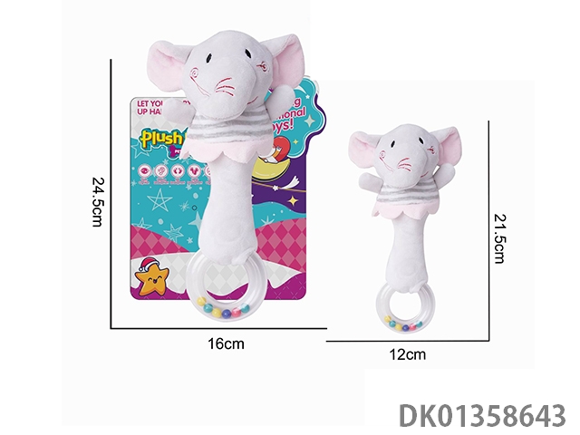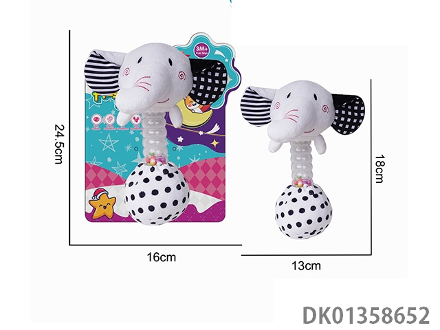 Plush black and white elephant holding a rocking bb stick baby comfort toy