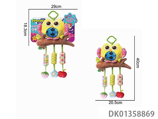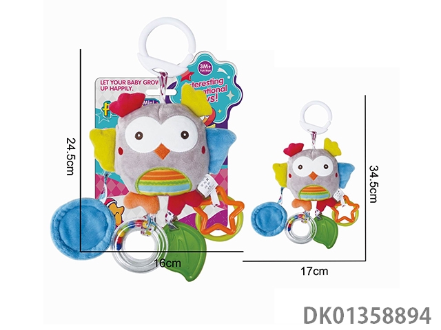 Plush owl bedside cart pendant, teething and soothing toy
