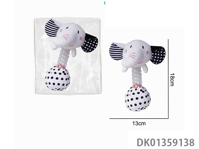 Plush black and white elephant holding a rocking bb stick baby comfort toy