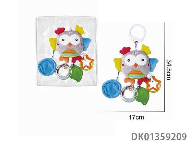 Plush owl bedside cart pendant, teething and soothing toy