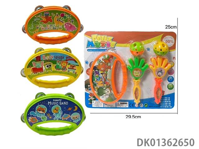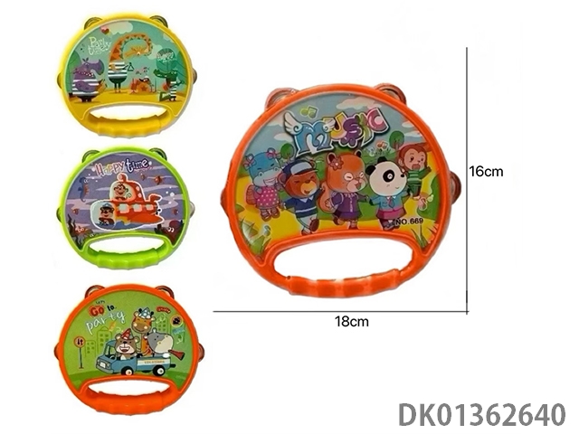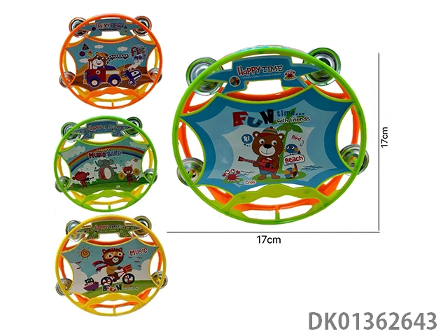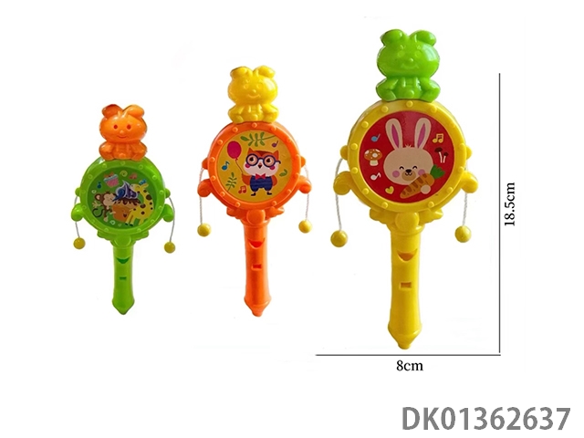 Whistle, wave, shake bells, drums, cartoon