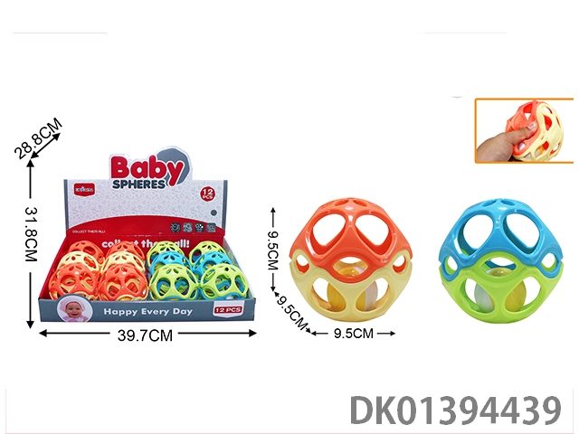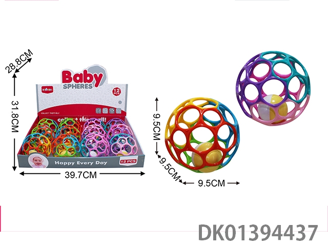 Baby clutch ball, soft rubber hole ball, bell ringing, 12pcs/box