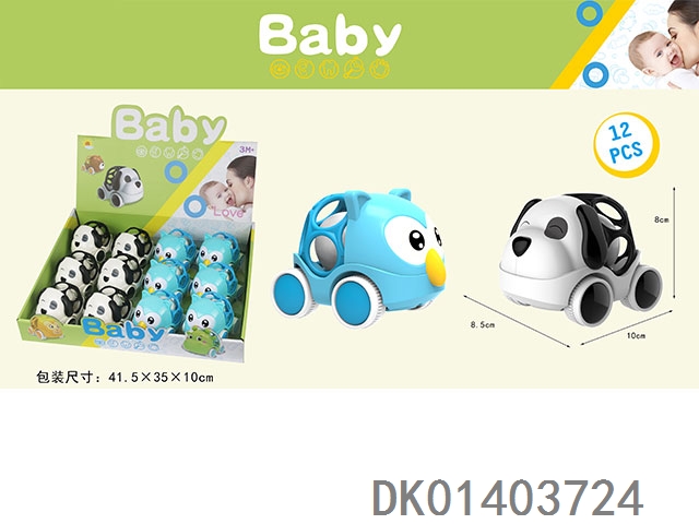 Animal soft rubber rattle car (owl/dog mixed) 12pcs/box