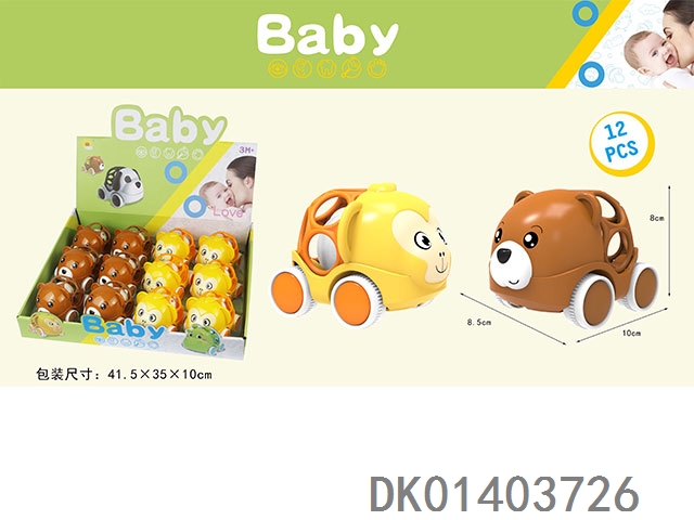 Animal soft rubber bell car (mixed bear/monkey) 12pcs/box