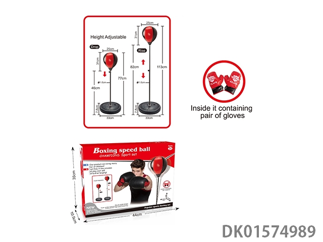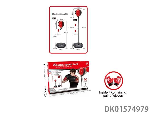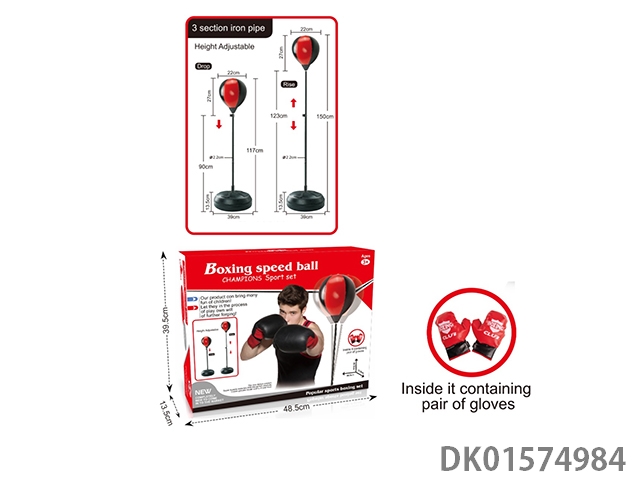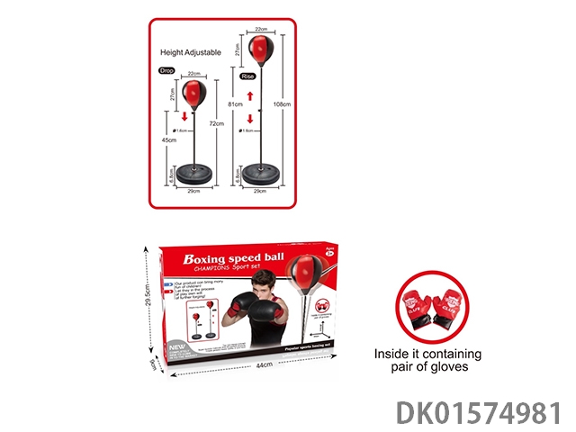 Boxing speed ball with three quarters and 22cm ball paired with a pair of gloves