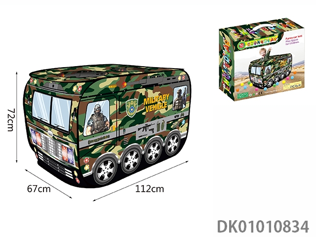 Camouflage armed car with 50 ocean balls