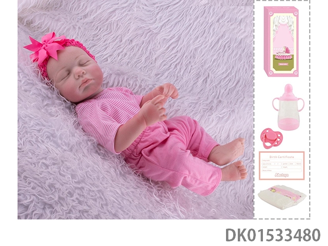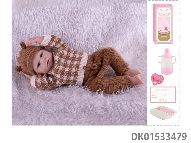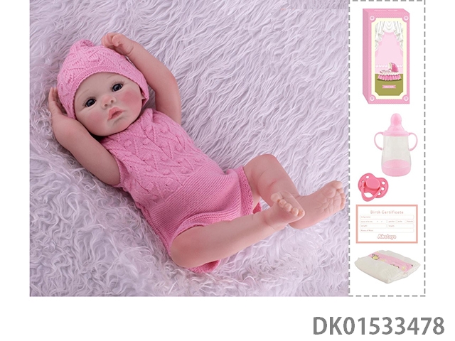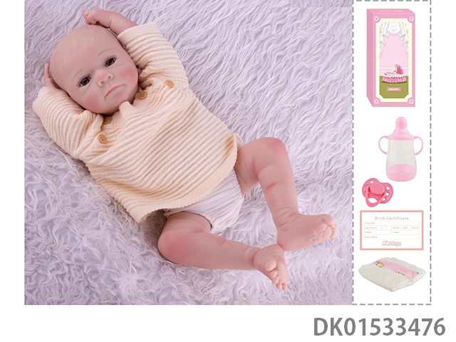 48Cm reborn doll soft rubber high simulation baby doll (hand drawn hair, advanced color painting) with bottle, magnetic nipper, diaper, birth card