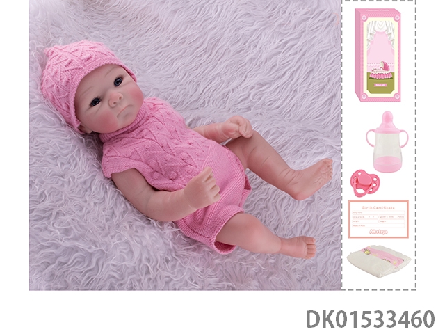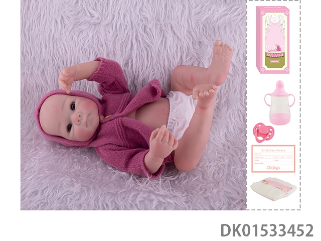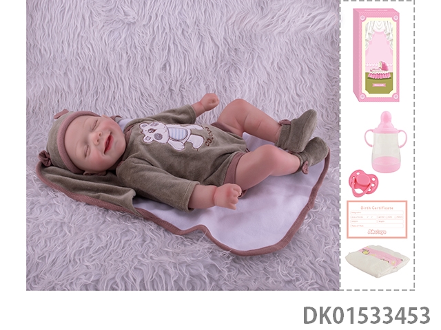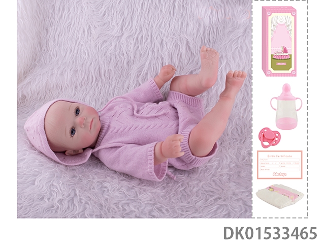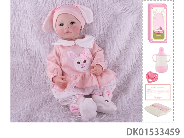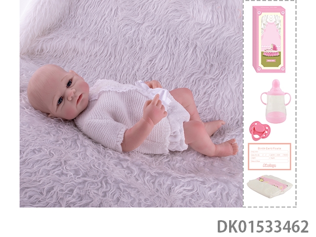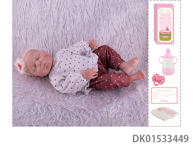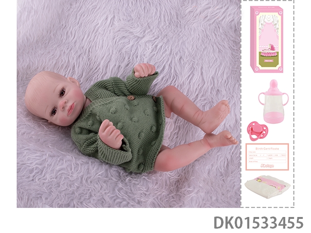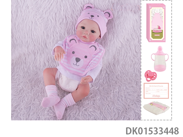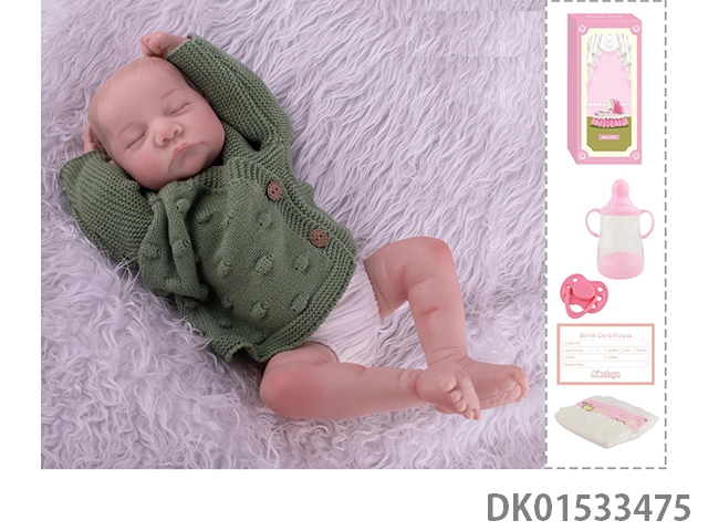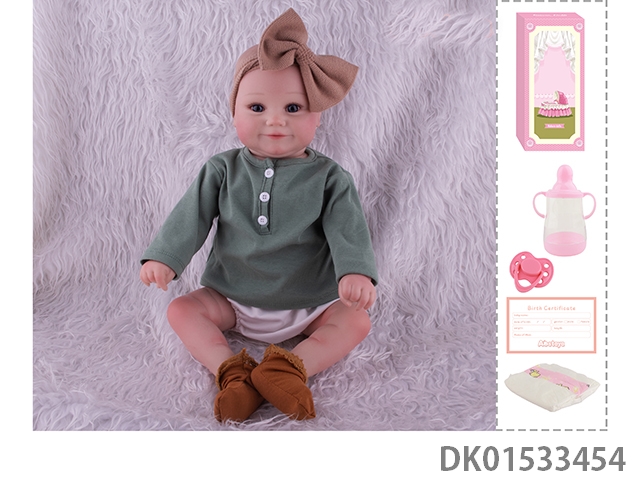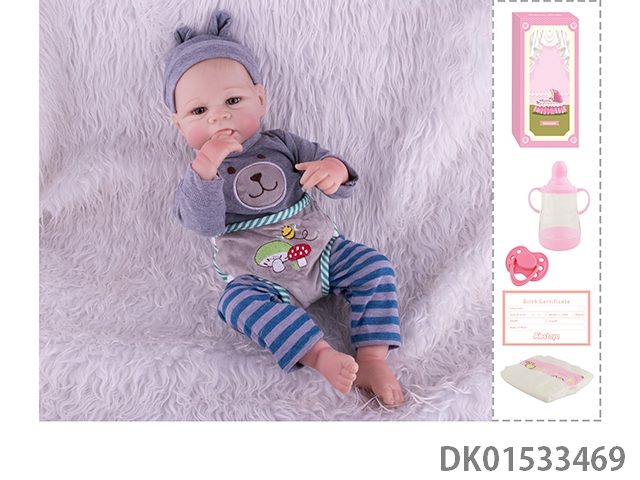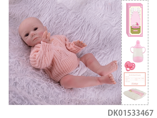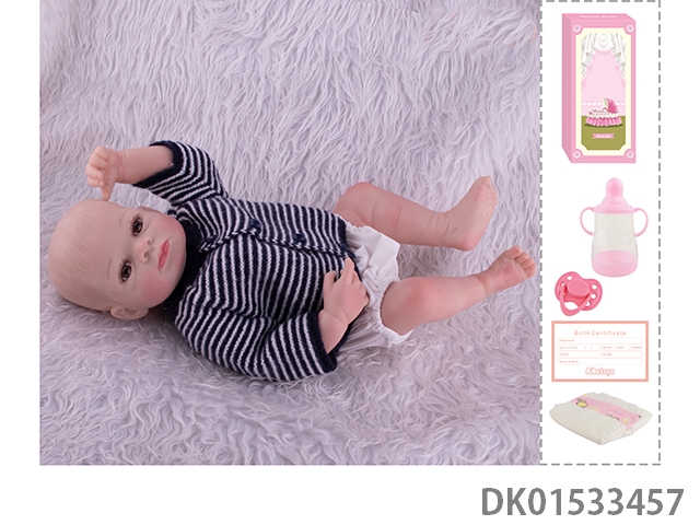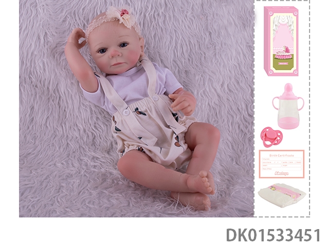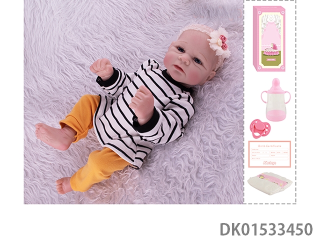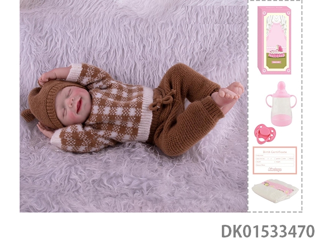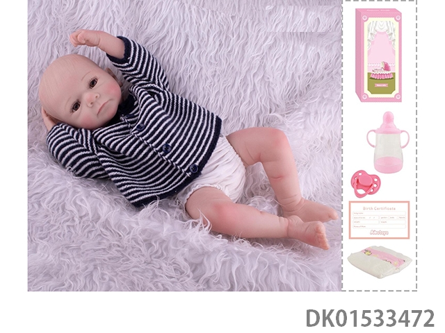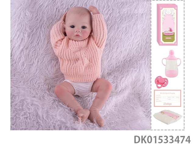 48Cm reborn doll soft rubber high simulation baby doll (hand drawn hair, advanced color painting) with bottle, magnetic nipper, diaper, birth card