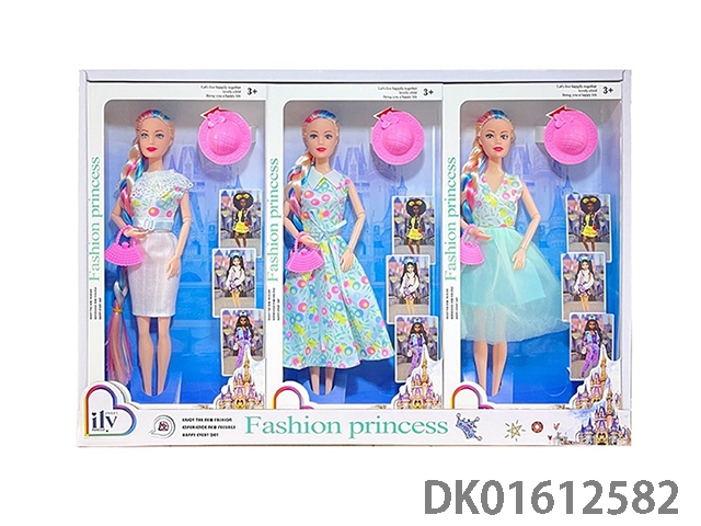 11.5-Inch solid 9-joint long braid princess doll series with vacuum formed accessories (3 mixed 3pcs/box