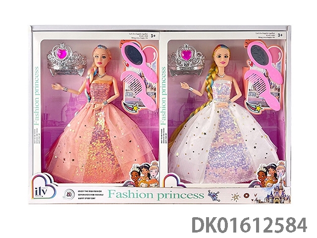 11.5-Inch solid 9-joint long braid princess doll series with comb, mirror crown (2 mixed 2pcs/box