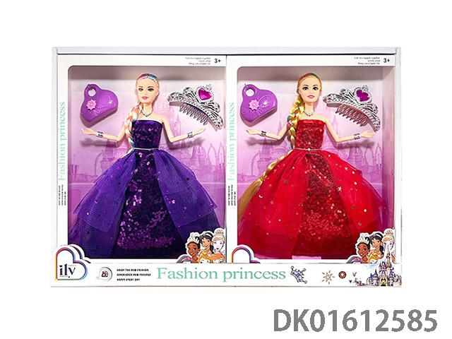 11.5-Inch solid 9-joint long braid princess doll series with handbag crown (2 mixed 2pcs/box