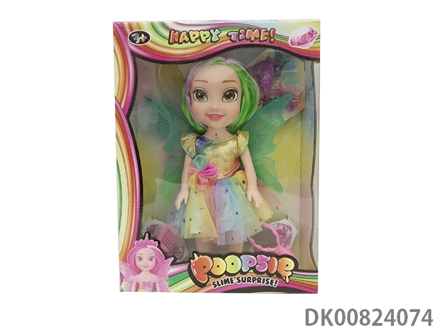 14 Inch doll with green butterfly wings, colorful golden hair, (plastic body, hair and skirt with light, music, no electricity)