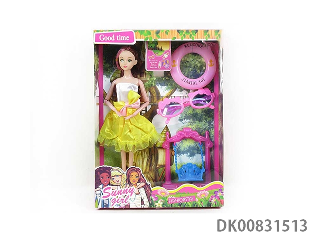 New 11 inch solid body 9-joint girl with swimming ring, swimming glasses and swing chair