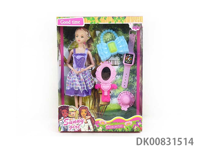 New 11 inch real body 9-joint girl with watch, hat, big mirror and handbag