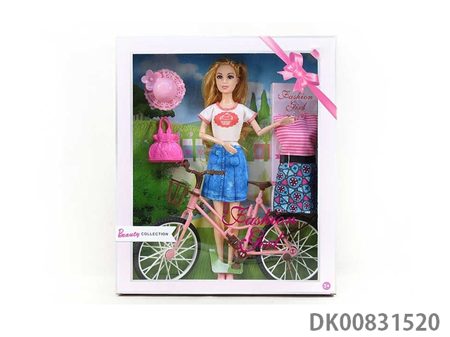 New 11 inch solid 11 joint short girl, with hat, handbag, bicycle
