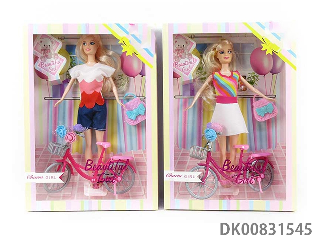 New 11 inch real body fashion happy girl with bicycle and handbag