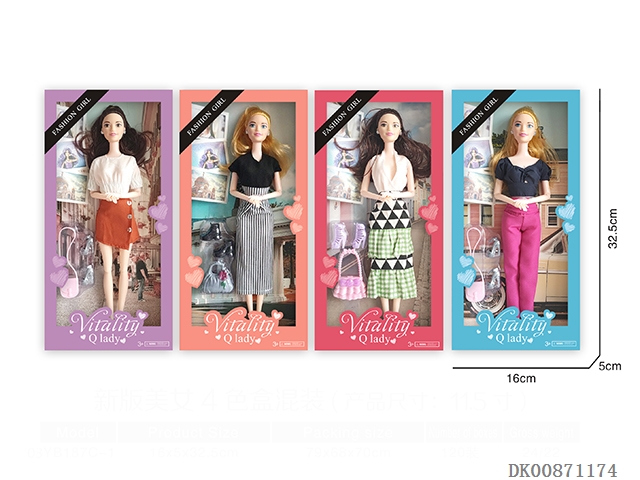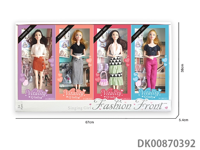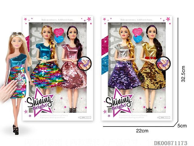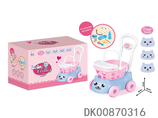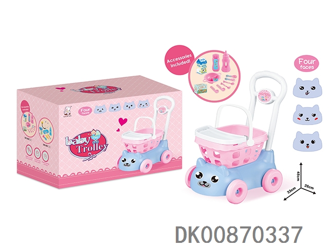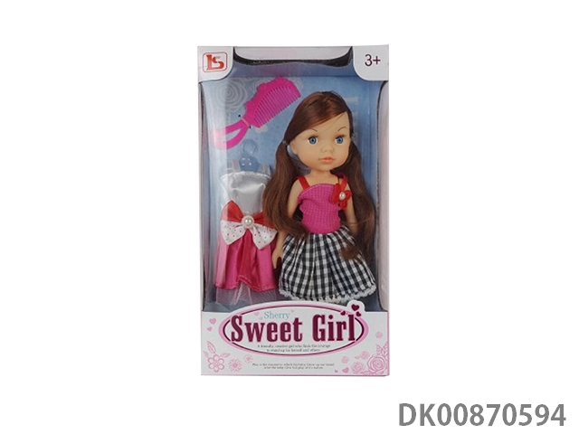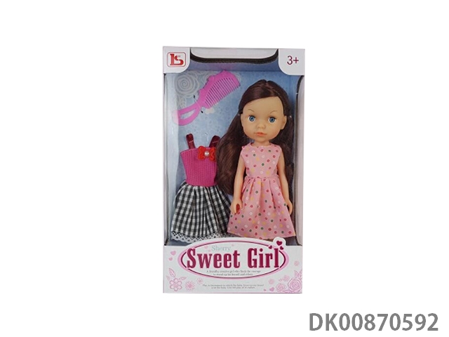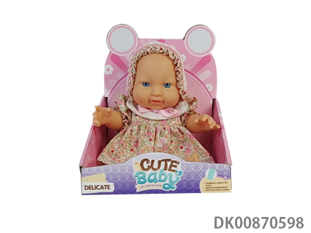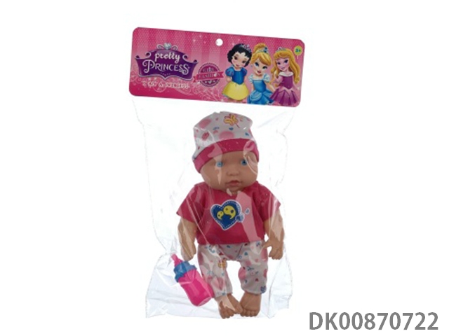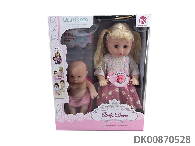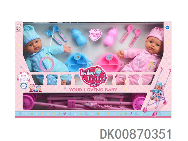 13 Inch direct filling cotton body, enamel hand and foot twin doll, equipped with 1 plastic cart, tableware. with ic
