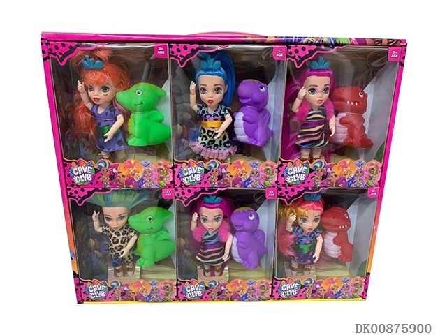 6-Inch 12 joint solid cave club 6 people and dinosaurs 6pcs/box