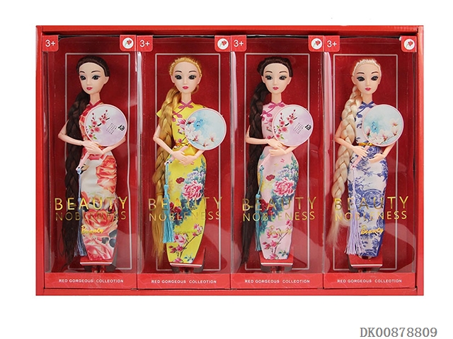 11.5-Inch 9-joint long cheongsam beauty with fan 4 pcs/box