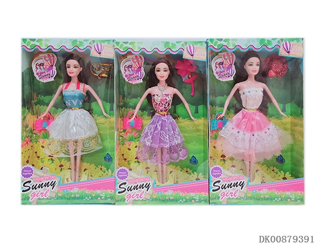 3 Girls in 11.5-inch solid wedding dress mixed with 3 handbags and accessories