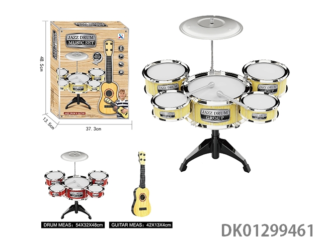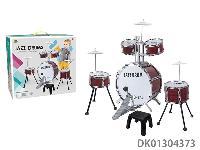 1 Color/5 drum/3 cymbal/wood grain split jazz drum with 4-pod square chair