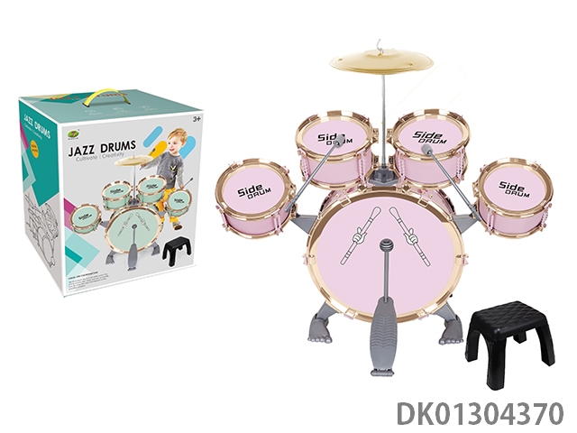 Green/pink 2 colors/5 drums/gold circle jazz drum with 4-leg square chair
