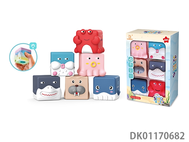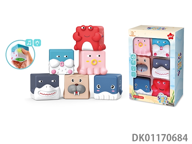 Light music ocean cute pet soft glue building block 6-piece set