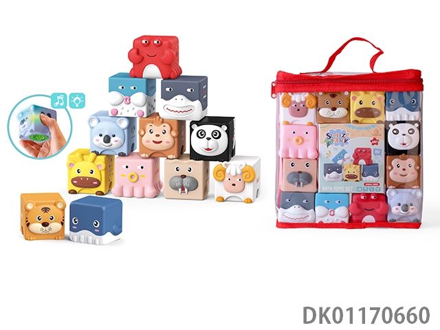 Light music cute pet soft glue building block set of 12