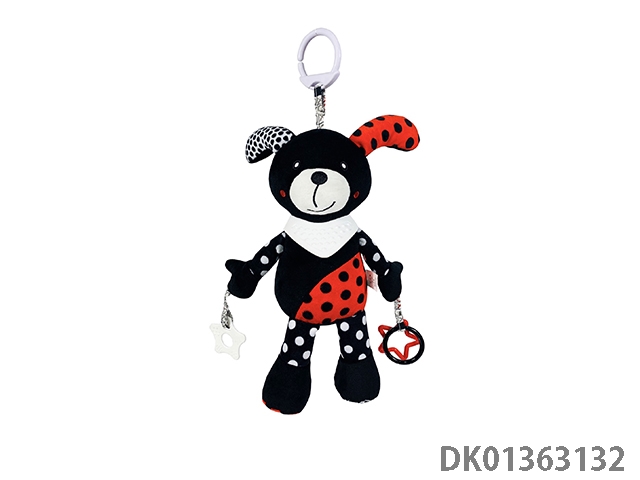 Black puppy baby soothing bell, teething ring, plush pendant