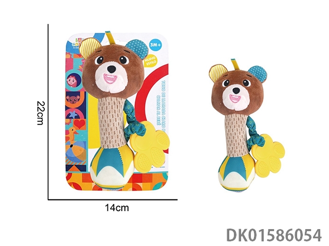 Baby cartoon colored hand cranked sand hammer stick - little bear