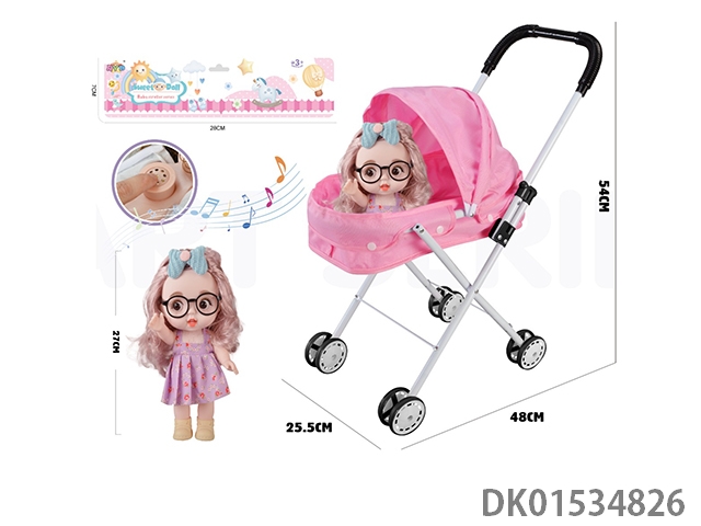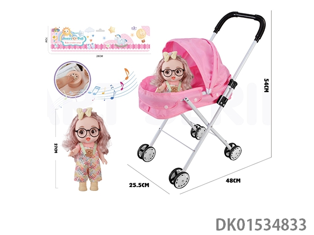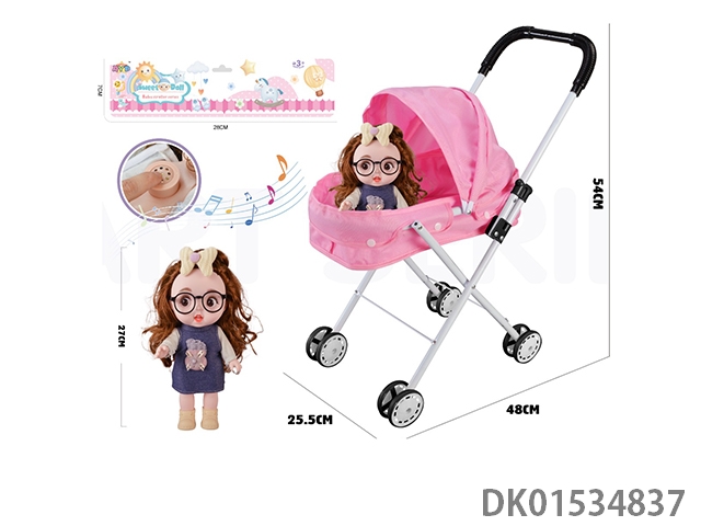 Iron handcart with 16 inch cute baby (with ic, ice and snow theme song, plastic body)