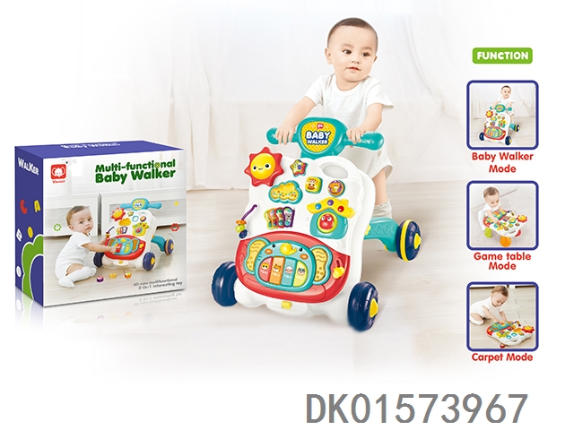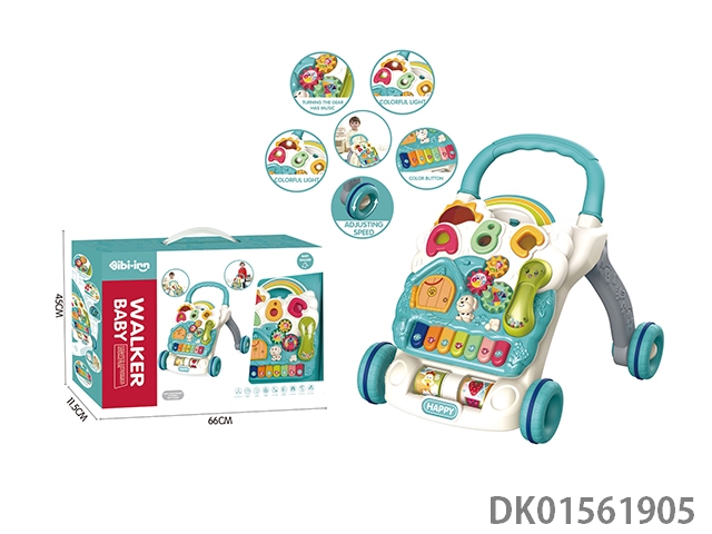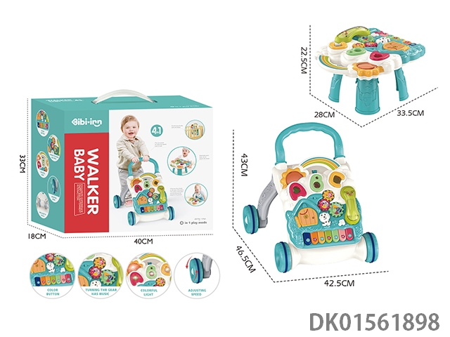 Cartoon puzzle early education multi-functional electronic keyboard, walking cart, toy game table, 4-in-1 (blue)