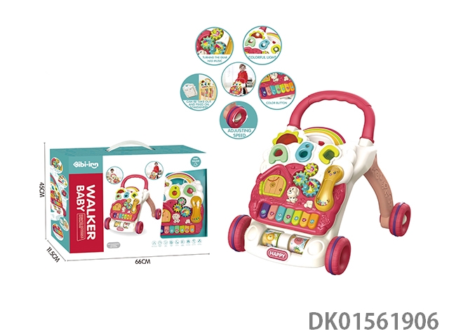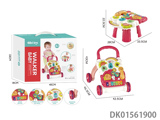 Cartoon puzzle early education multi-functional electronic keyboard, walking cart, toy game table, 4-in-1 (red)
