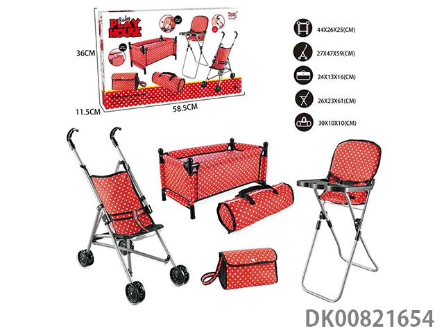 Combination 5-piece set (plastic cart, bed, dining chair, schoolbag, handbag)