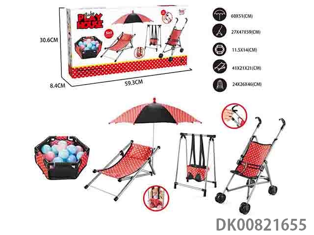 Combination 5 sets (beach chair, umbrella, fence, ocean ball 6, swing, plastic car)