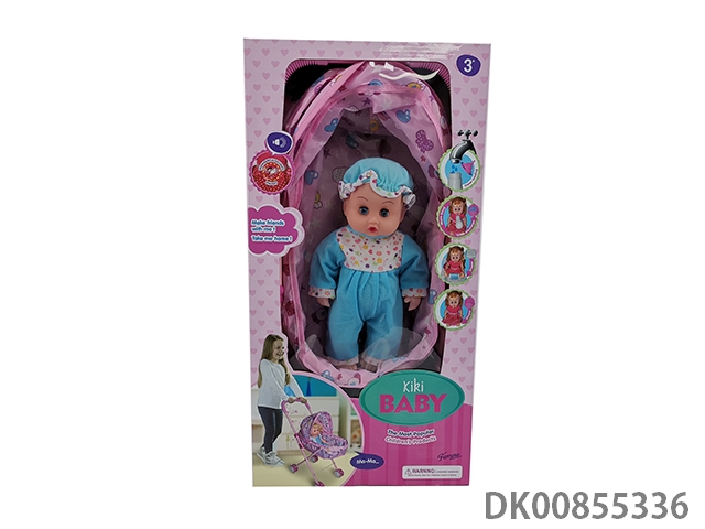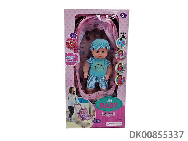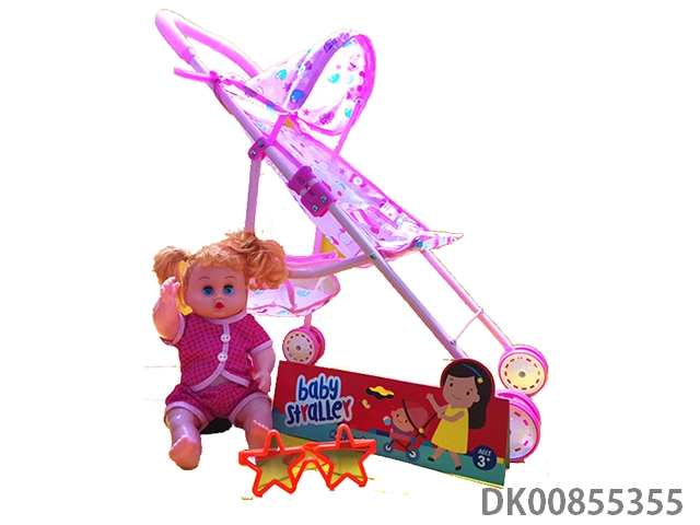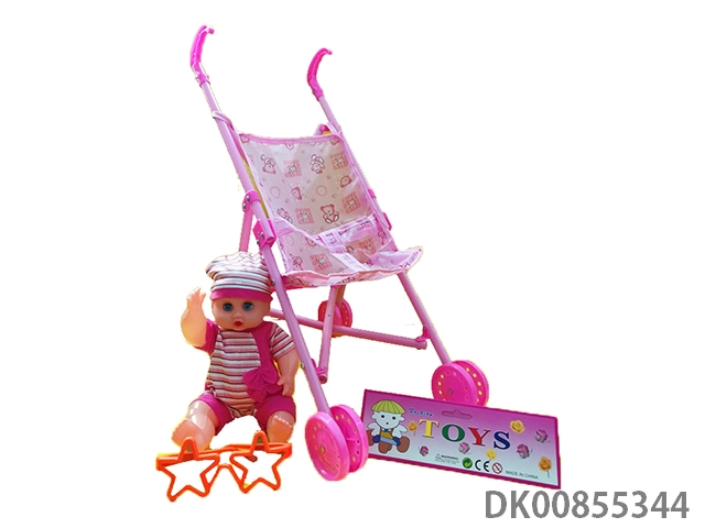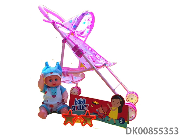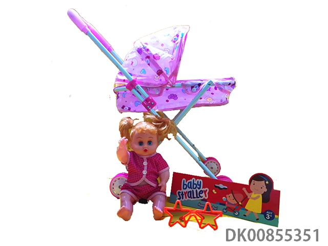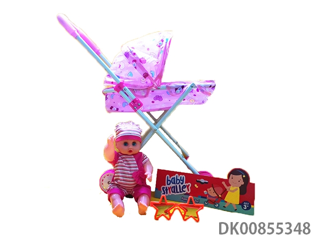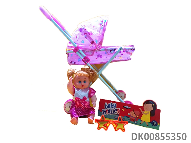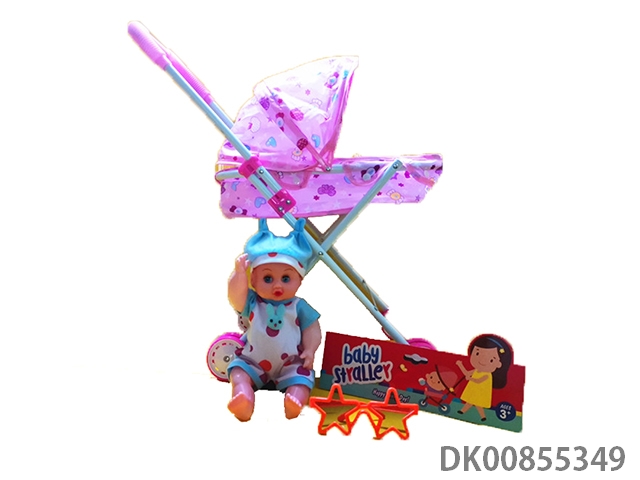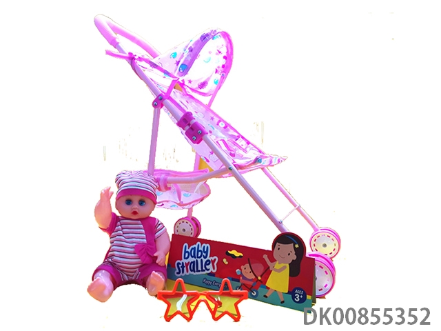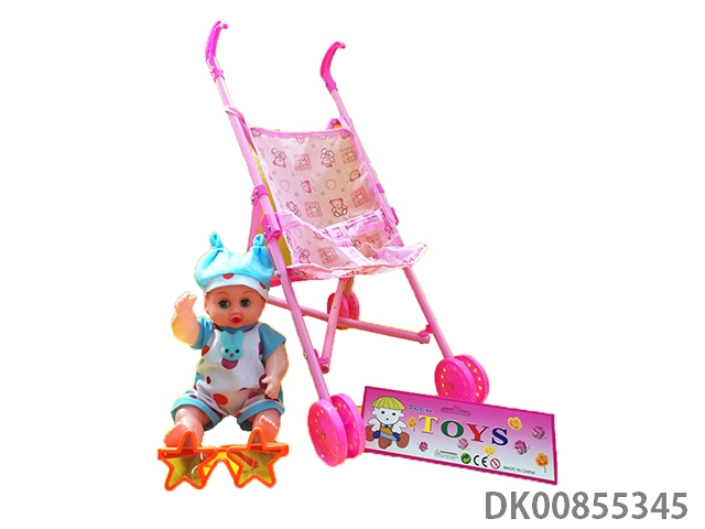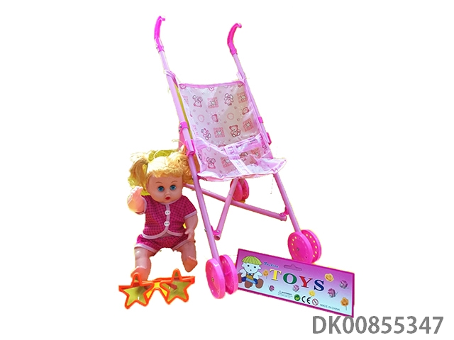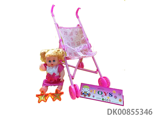 Baby stroller with dolls and glasses