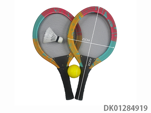 38 * 19Cm mesh plastic racket with 1 feather and 1pu