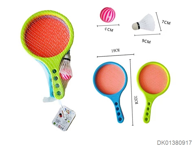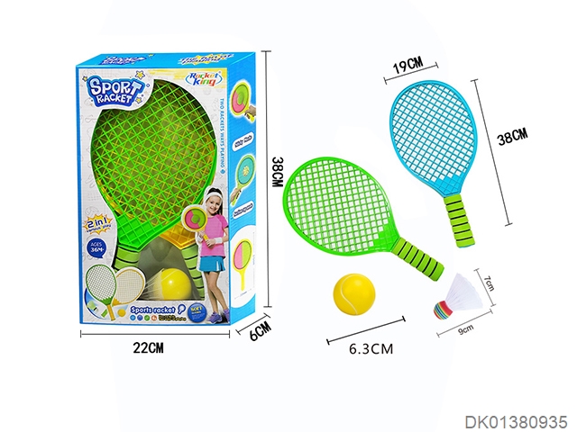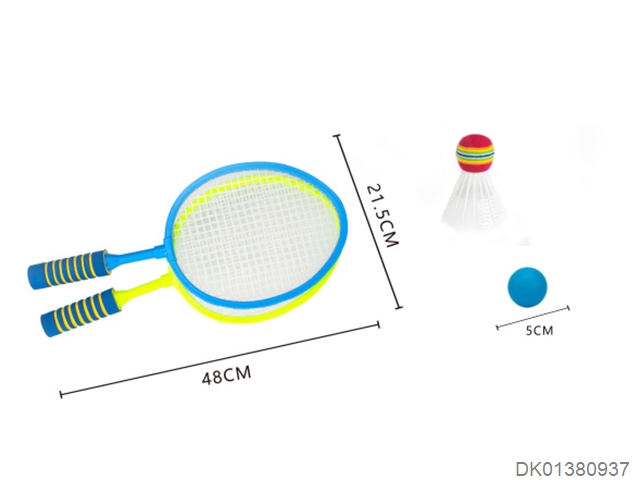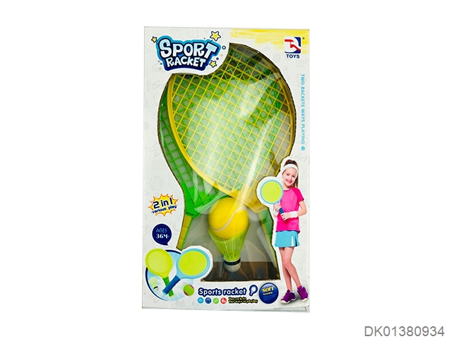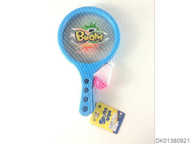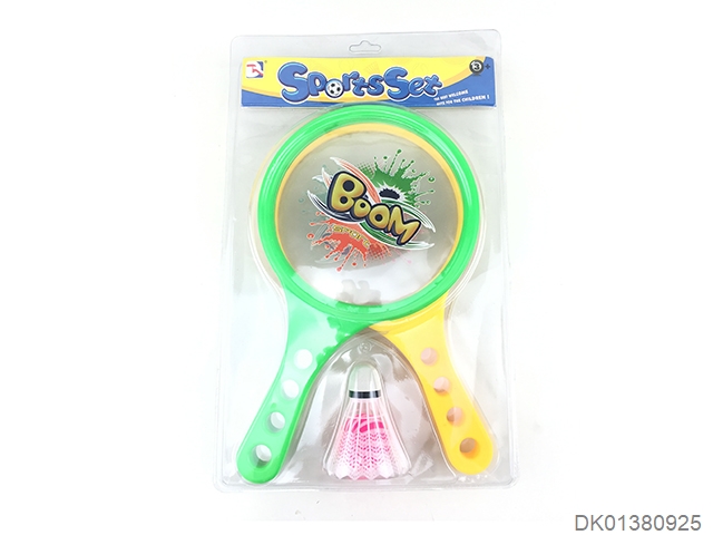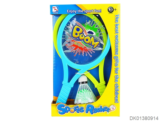 Mid sized racket with film and light, equipped with 1 feather and 1 ball