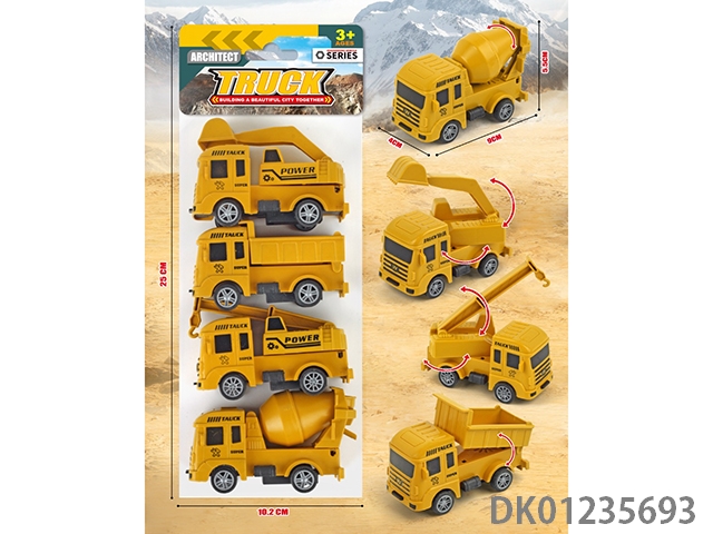 Four types of engineering vehicles for sliding (12 pieces/box)