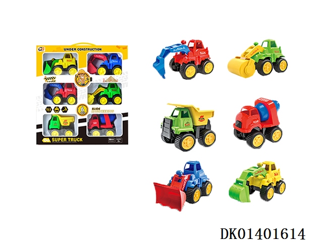 Sliding cartoon engineering vehicle set/6-pack
