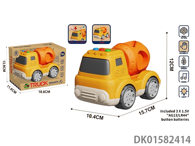 Wheat straw cartoon sliding engineering mixer truck (with lighting and music)