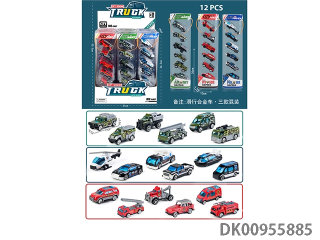 Alloy sliding fire truck (mixed loading of three models) 12pcsbox