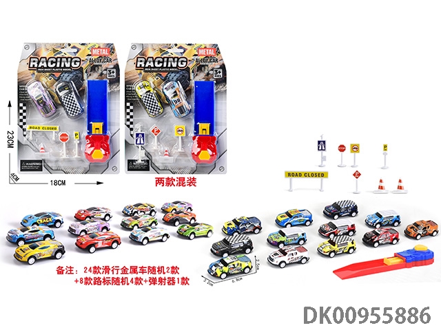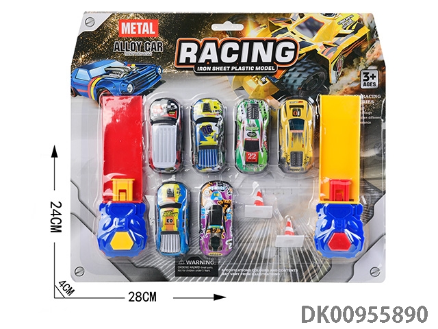 Sliding metal vehicle (2 catapults and 6 vehicles and 2 roadblocks)