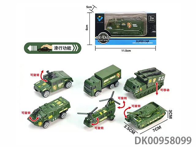 Single box 1:64 alloy sliding military series (6 mixed packages)